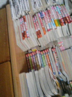 マンガが本棚に入りきれなくって、こんな状態になっております…。