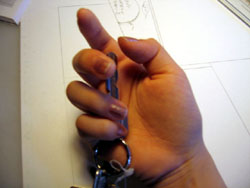 ←の写真は、手を描く時は難しいアングルの時は、自分の手を撮ってから描くので、その時の一枚。